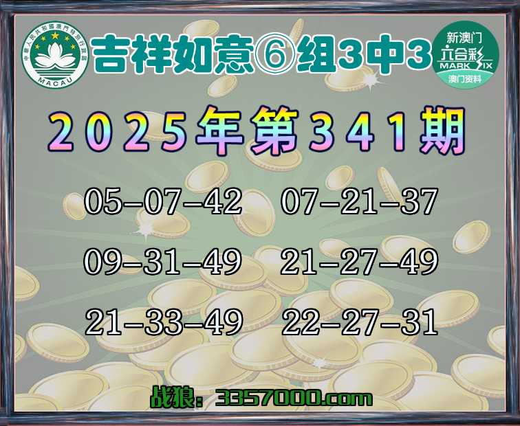 341期: 🚣《吉祥如意》 🚣⑥组3中3🚣